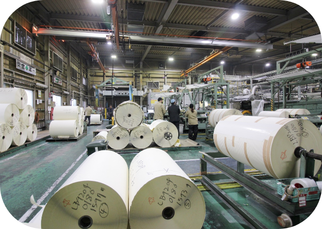 検査課は壁紙作りの最後を担当する部門。プリントとエンボス加工が終わった壁紙を50メートルのロールにして包装紙で包み、製品として完成させます。