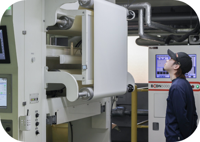 現在はプリント工程で印刷部門を担当しています。壁紙には花柄やコンクリート風などさまざまな柄がありますが、そういった柄はすべて大型の印刷機によって印刷されます。私はその印刷機を扱う仕事です。